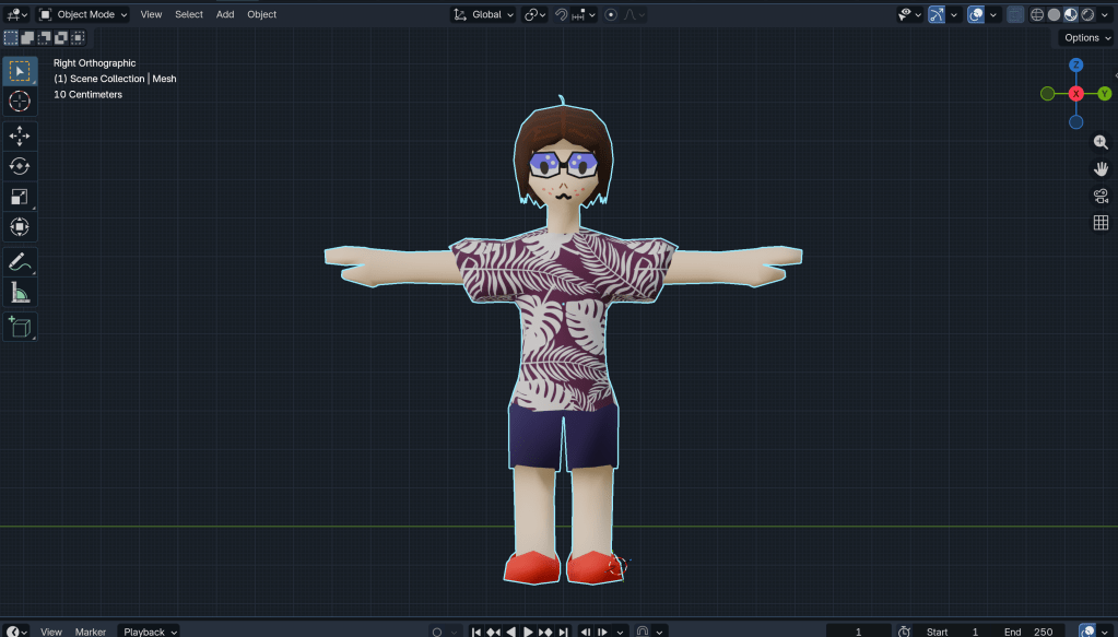 Obviously, my way of designing a 3D character model differs greatly from a professional in the industry. While they would have the processes of blocking out, rendering the higher-detailed model, playtesting, etc, I essentially stopped after the blocking out phase as I do not yet have the tools or knowledge to go any further, although I would like to try at some point.