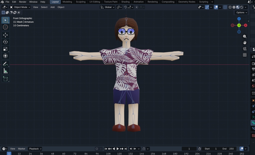 Above are some final renders for my 3D character. The final model turned out okay, but the rigging and textures were a bit dodgy, which led to a slightly uncanny-looking model. Overall, it is not too bad, in my opinion.